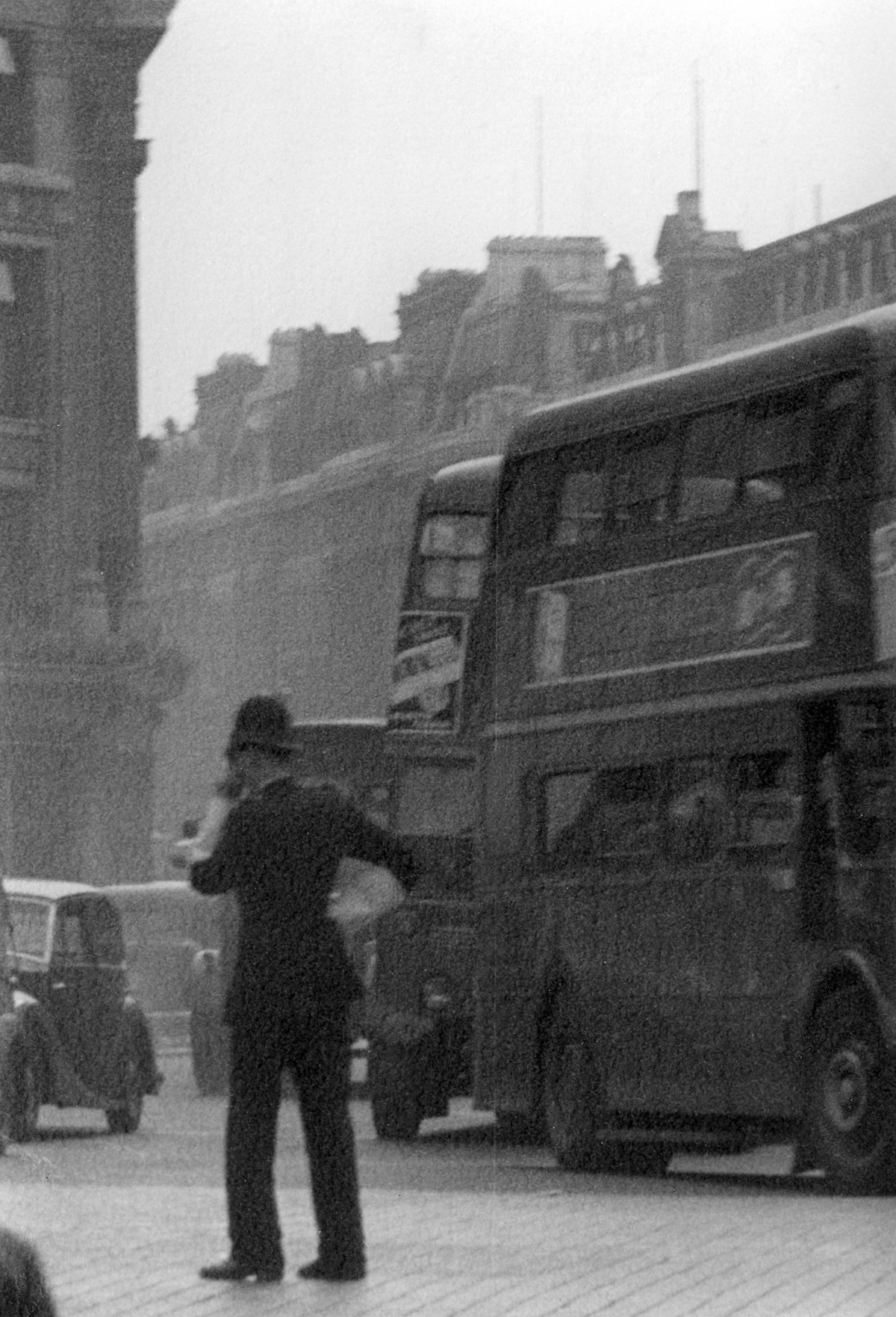 When he wasn’t at his English classes, he was out and about in the metropolis, travelling east and west, north and south with his German Exakta camera. He mostly used London Transport buses, occasionally the Tube.