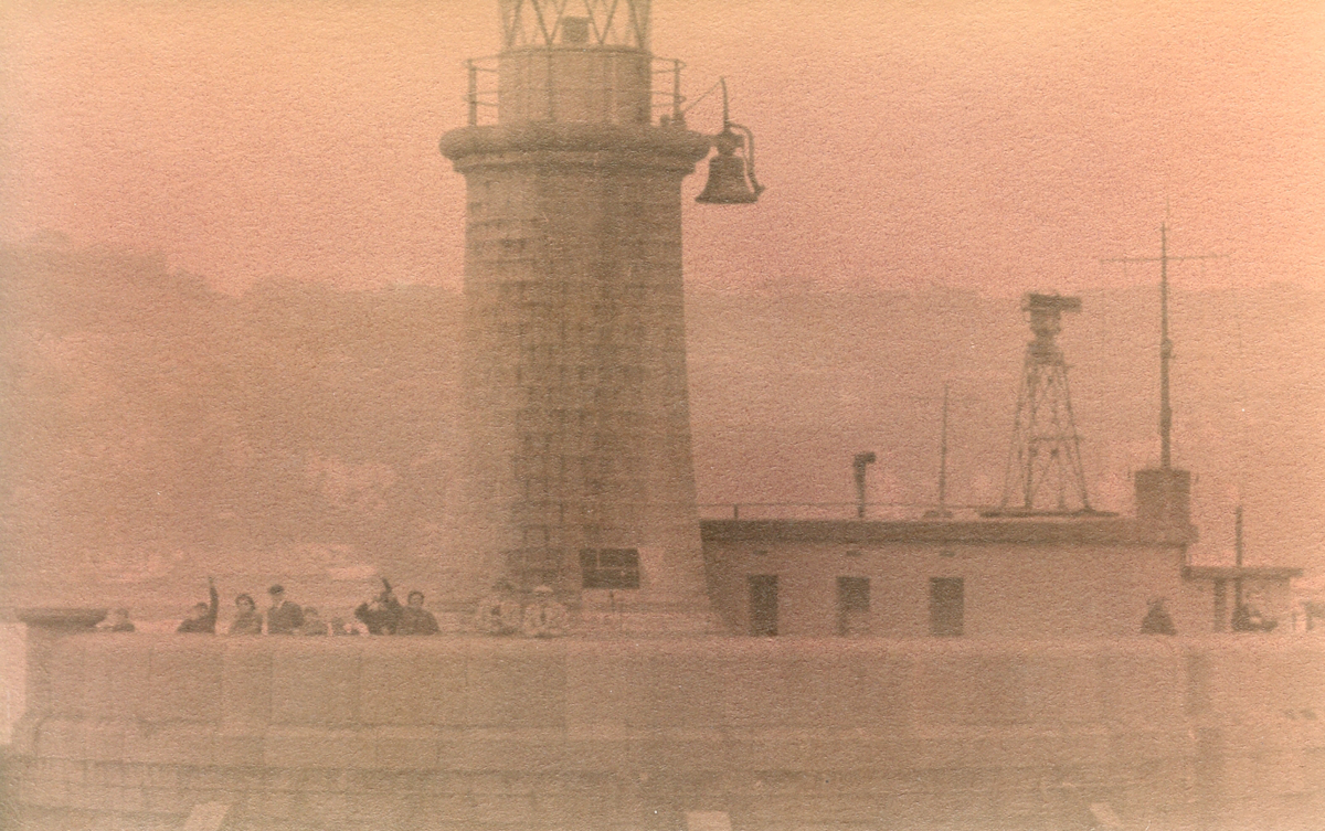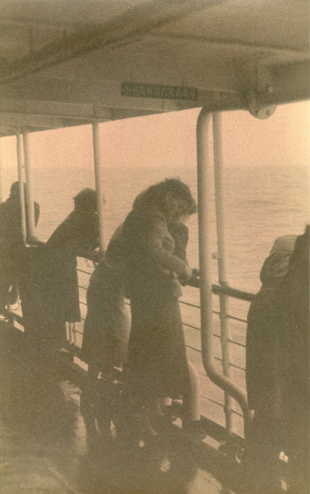 This is the boat he sailed on from Dover back to the Continent. Print affected by poor fixing or printing on old photographic paper stock. Curiously, the same problem occurred on some of the prints from when he sailed out from Hook of Holland.